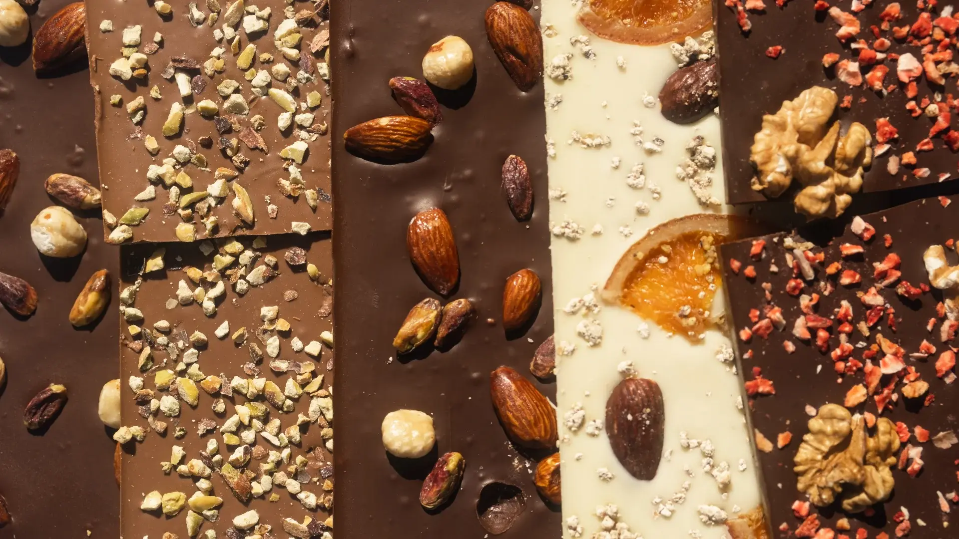 - Frutas deshidratadas: aportan estallidos de sabor fresco, colores vivos y una textura rica. Su baja actividad de agua las hace compatibles con la mayoría de los centros de confitería, evitando la liberación excesiva de humedad que podría ablandar el producto. Aunque son higroscópicas —propiedad de absorber la humedad del medio ambiente—, su estabilidad en ganaches y otras preparaciones las convierte en una de las inclusiones preferidas de los chocolateros artesanales.